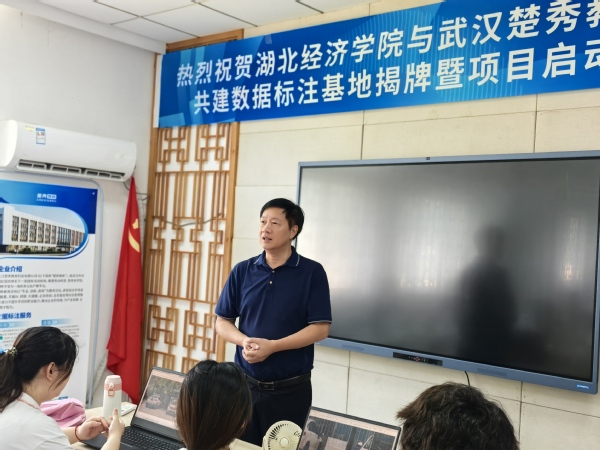 许传华来到学院与武汉楚秀教育科技有限公司共建的数据标注实习基地看望暑期实习学生,仔细询问岗位安排、工作内容以及实习收获,关切了解同学们的学习和生活情况。他对同学们利用假期积极参加实训,锻炼本领表示肯定,并勉励同学们珍惜实习机会,把所学知识与实践经验紧密结合,在“真刀真枪”的锻炼中不断提升专业素养和综合能力。