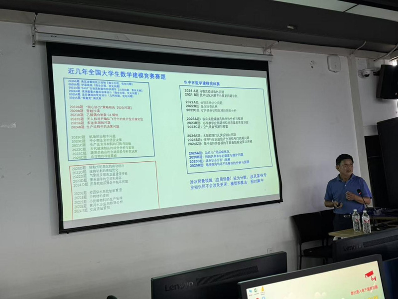 报告会上,羿教授从大学生数学建模竞赛概况与典型赛题、竞赛论文写作、数学建模模型算法的设计计算等方面进行了全面的讲述。