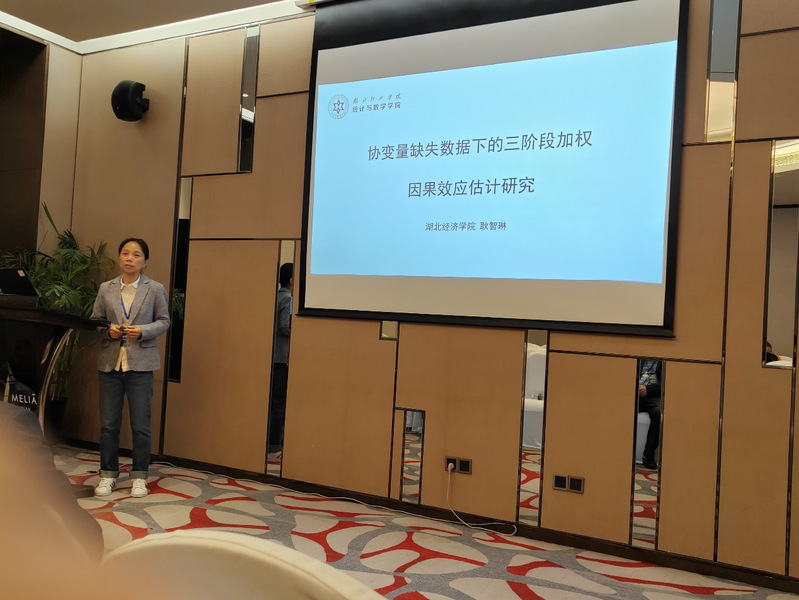耿智琳老师在“因果发现和因果推断”分组会议中进行了首场报告,与来自北京大学、清华大学、对外经济贸易大学、北京工商大学等高校的与会嘉宾围绕因果推断中的统计方法、估计偏差与稳健性、行业应用等主题展开交流。她在《协变量数据缺失下的三阶段加权因果效应估计研究》的主题报告中分享了协变量数据缺失情况下更有效的插值方法,为因果效应估计中的缺失值处理提供了新思路,受到与会嘉宾的好评。