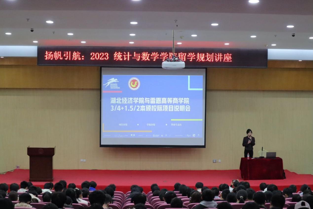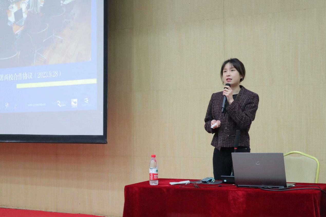 在会议的第一项议程中,杜贝宁老师向大家详细介绍了法国雷恩高等商学院的3/4+1.5/2本硕校际项目,包括该学院开设的全英文硕士项目以及雷恩商学院硕士专业目录。随后的第二项议程,国际交流与合作处副处长平艺老师全面介绍了学院出国(境)项目的整体情况,包括各类海外交流项目的详细介绍以及针对不同需求和时间安排的留学申请条件、材料准备和学校政策支持等方面的详细讲解。最后,会计学院大三的张婉欣同学分享了她在荷兰汉斯应用科技大学交换一学期的经历和感悟。她详细介绍了该学校的教学环境、模式、饮食、交通等方面以及她在交流期间所去的旅游国家,并总结了这一学期的收获和感悟。